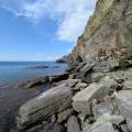 On se promène là un petit moment avec les enfants, on jette des cailloux dans la mer, et puis l'heure de notre train retour approchant, on fait demi-tour vers la gare...